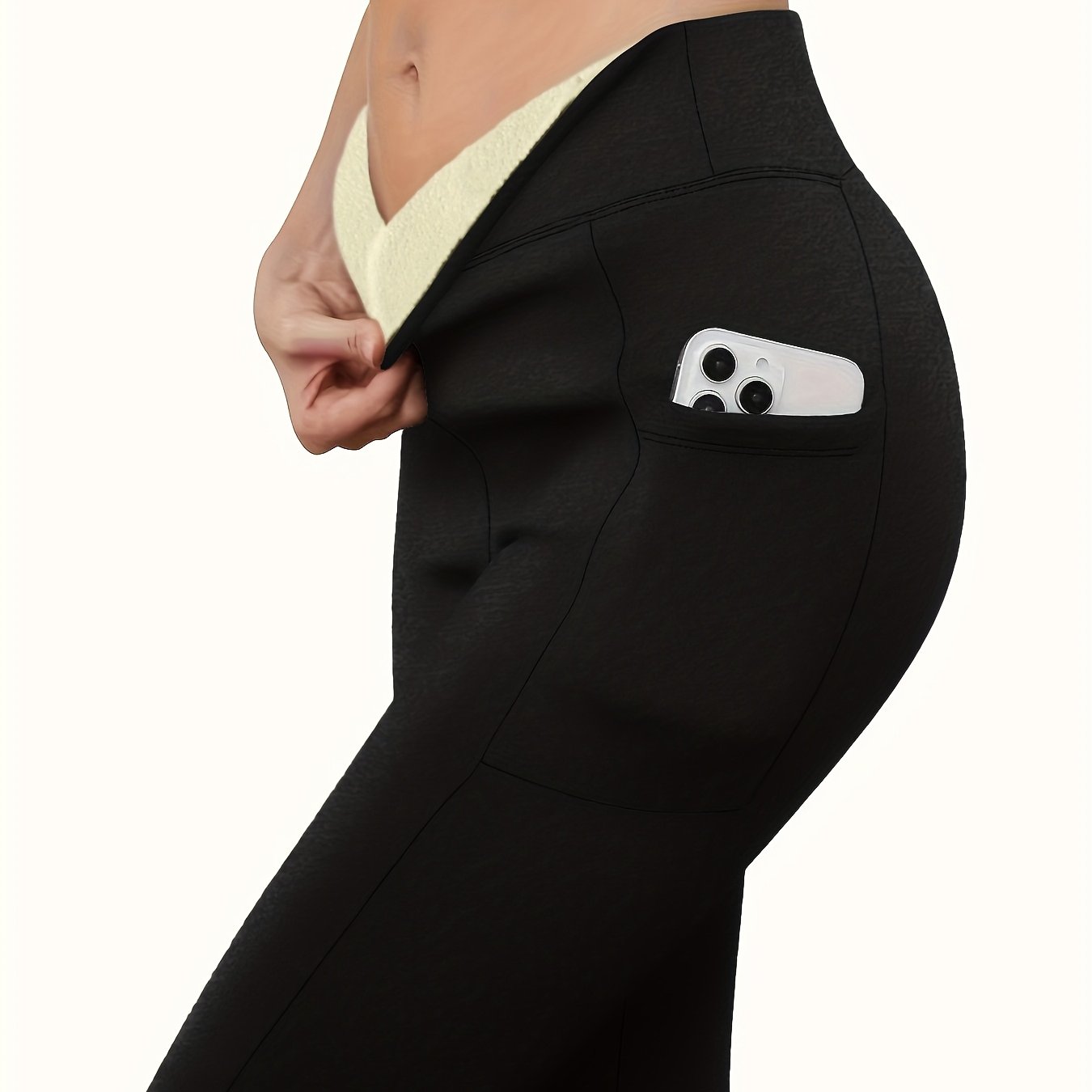 TEMU 여성용 하이웨스트 플리스라인 요가 팬츠 - 포근한 안감과 넉넉한 주머니, 겨울철 운동복으로 적합: 체육관/러닝/캐주얼 착용에 완벽한, 기계세탁이 가능한 풀랭스 커버리지 피트니스 레깅스 (Fall/Winter Essentials)