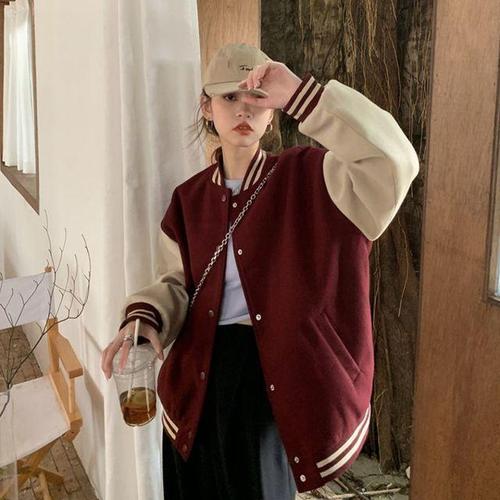 봄부터 겨울 신축성 좋은 여성 배색 기모 야구 점퍼