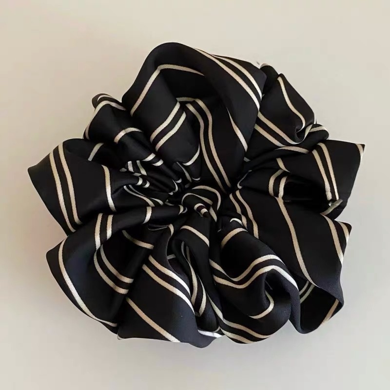 TEMU 1개 여성용 우아한 레트로 새틴 스크런치 - 러쉬드 텍스처, 블랙/화이트 줄무늬 대형 헤어 타이, 포니테일 & 브레이드용 부드럽고 내구성 있는 원단, 무봉제 헤어타이, 번 고정 스크런치, 광택이 나는 새틴 마감
