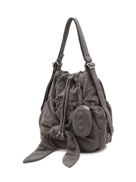[아떼 바네사브루노 백] [RUBAN(르봉)] 그레이 스웨이드 원단 리본 백팩 겸 숄더백 S AABA5E917G2