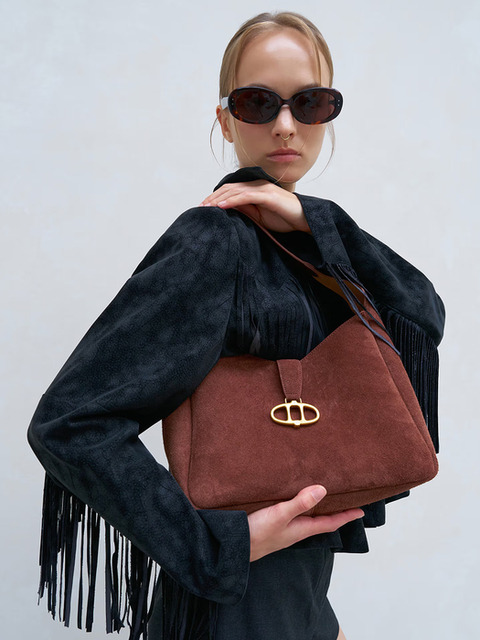 [아떼 바네사브루노 백] [MARON(마롱)] 브라운 스웨이드 호보백 M AABA5F408W3