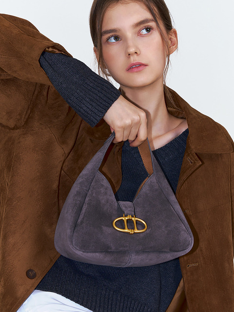 [아떼 바네사브루노 백] [MARON] 그레이 스웨이드 호보백 MINI AABA5F406G2