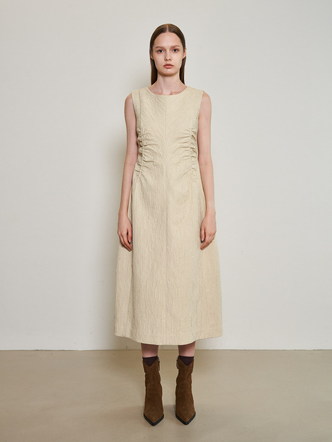 [무아르보] 슬리브리스 셔링 코튼 드레스_크림 옐로우