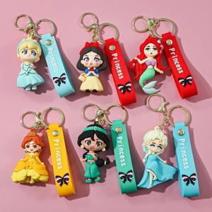 만화 공주 시리즈 키체인 동화 백설공주 아리엘 엘사 PVC 모델 인형 키링 가방 장식 펜던트 생일 선물