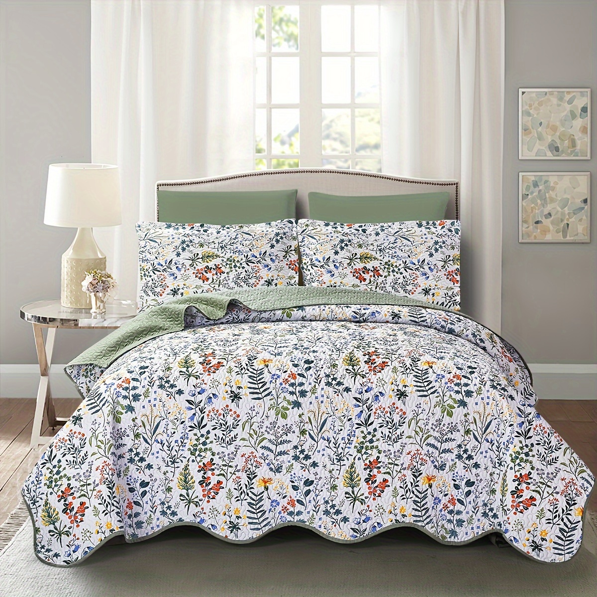 TEMU 3피스 봄 꽃무늬 침대 커버 세트, 마이크로화이버 세트, 매우 부드럽고 편안한 침구 (침대 커버 1개 + 베개 커버 2개) (퀼트 및 베개 코어 미포함)|베개커버