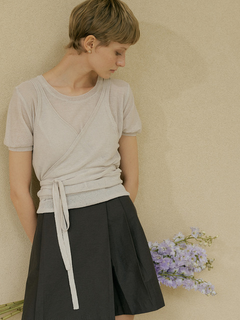 [어바드] 시어 리넨뷔스티에 셋업 니트_오트 그레이