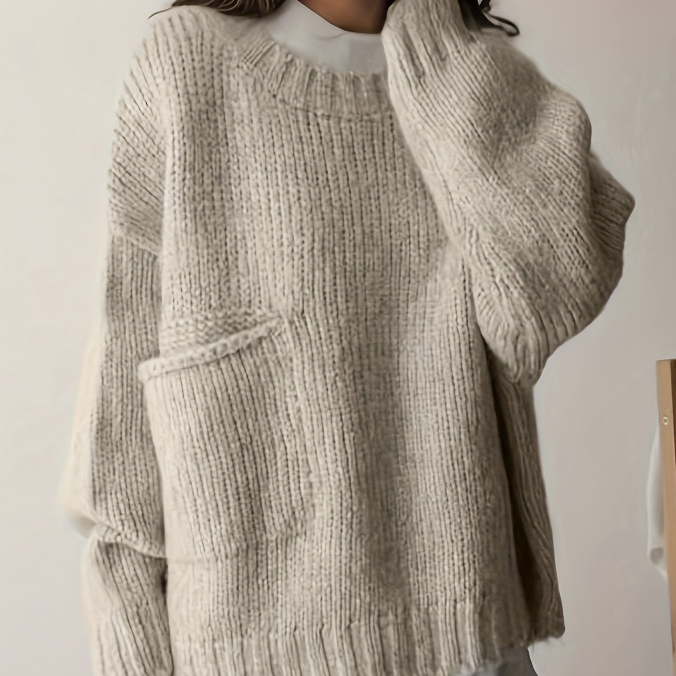 TEMU 플러스 사이즈 여성용 캐주얼 리브드 스웨터 - 포켓이 있는 편안한 라운드넥 긴팔 풀오버, 기계 세탁 가능 겨울 보온, 텍스처 패브릭