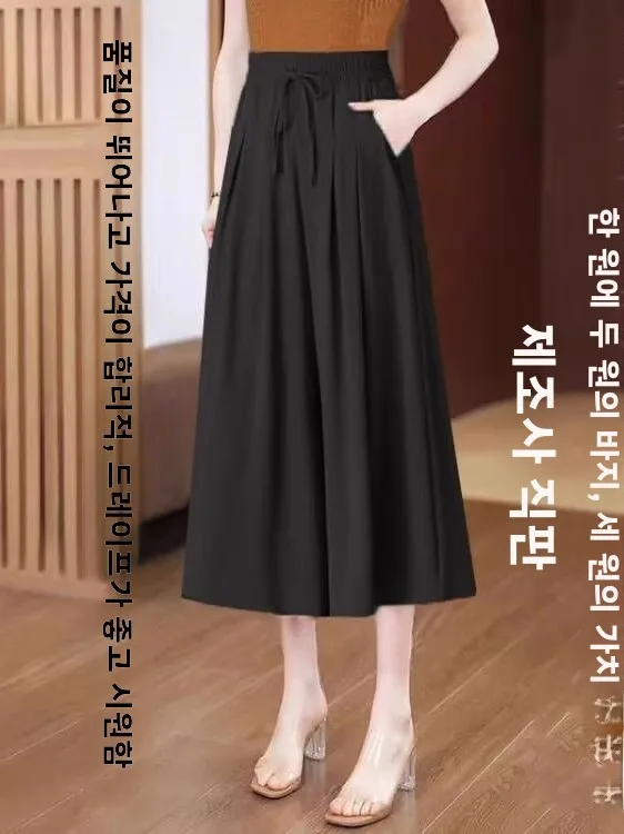 아이스 실크 와이드 레그 세븐풋 팬츠 여성 여름 드레이프 루즈 얇은 버전 한국 캐주얼 팬츠 스커트 팬츠 맘 팬츠
