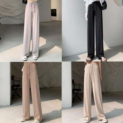 샵앤) 여성 리본 허리밴딩 쿨아이스 찰랑 와이드 팬츠 PIC-WPT-20649-블랙