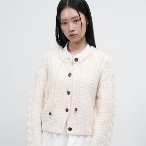[제너럴아이디어]WOMAN 벌룬 헤어리 케이블 가디건 [IVORY] / WBE4L04536