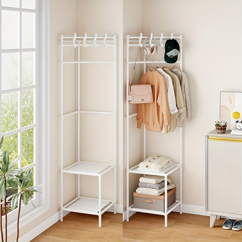 TEMU 1개의 강력한 독립형 옷걸이, 후크가 달린 공간 절약형 현대적인 금속 정리함 - 침실, 옷장, 거실용, 조립 필요 없음, 블랙/화이트 내구성 있는 보관 솔루션, 옷과 침구를 위한 다목적 코너 선반, 옷장 정리함 및 보관, 랙