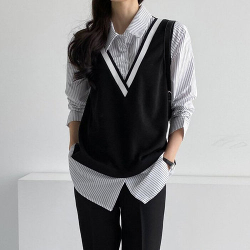 나야홍 / 아이우먼 줄지배색조끼형셔츠 BSC576M511 빅사이즈