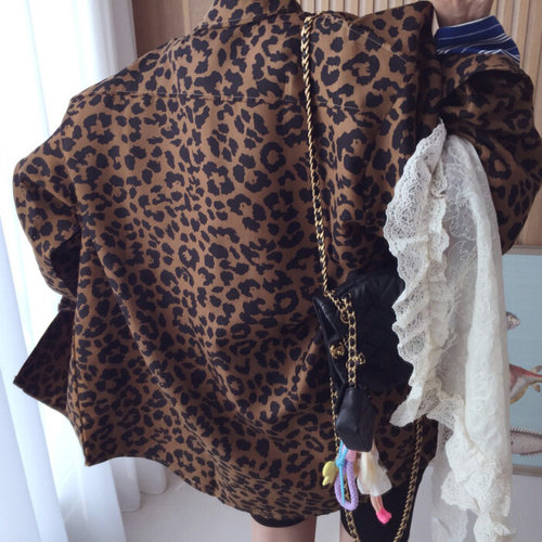 아이미마인 / 호피퀄 레오파드 패턴 언발 박시 루즈핏 카라 셔츠 남방