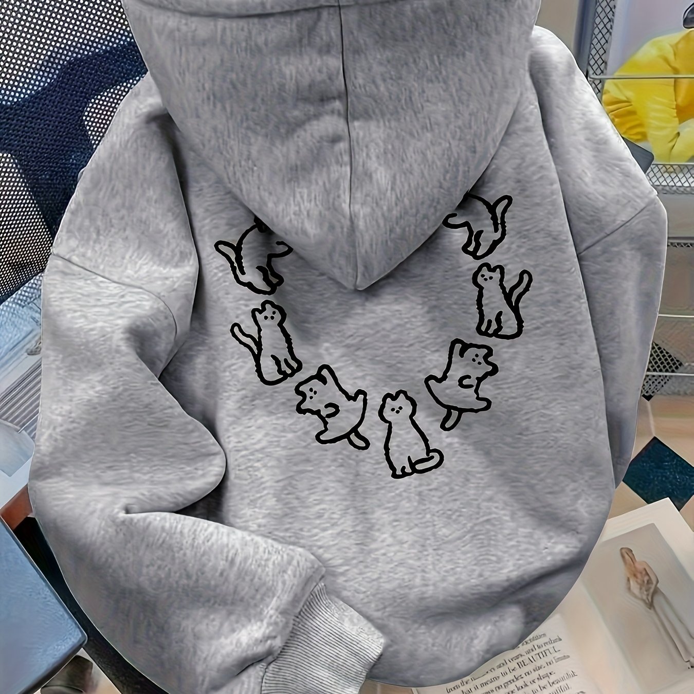 TEMU 플리스1001WP16 후드티, 유럽 및 미국 여성 가을 및 겨울 패션, 독특한 프린트 캐주얼 두피 세트