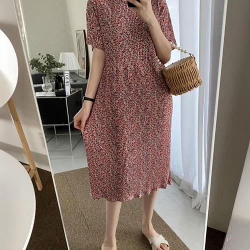 [모노무드]모노무드 홈웨어 꽃무늬 아이스 반팔 미디 원피스 여름 스타일 드레스