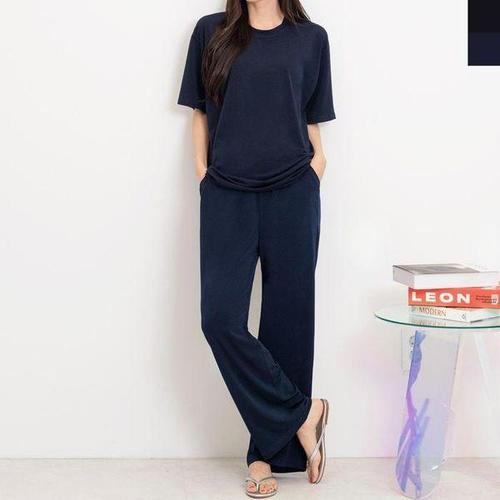 [셀러허브_여성트랜드패션]ONM 여자 아이스 반팔티 밴딩 일자핏 바지 세트