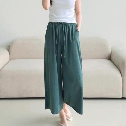 [에이치플러스몰]여성 캐주얼 밴딩 팬츠 빅와이드 아이스 8부 치마바지