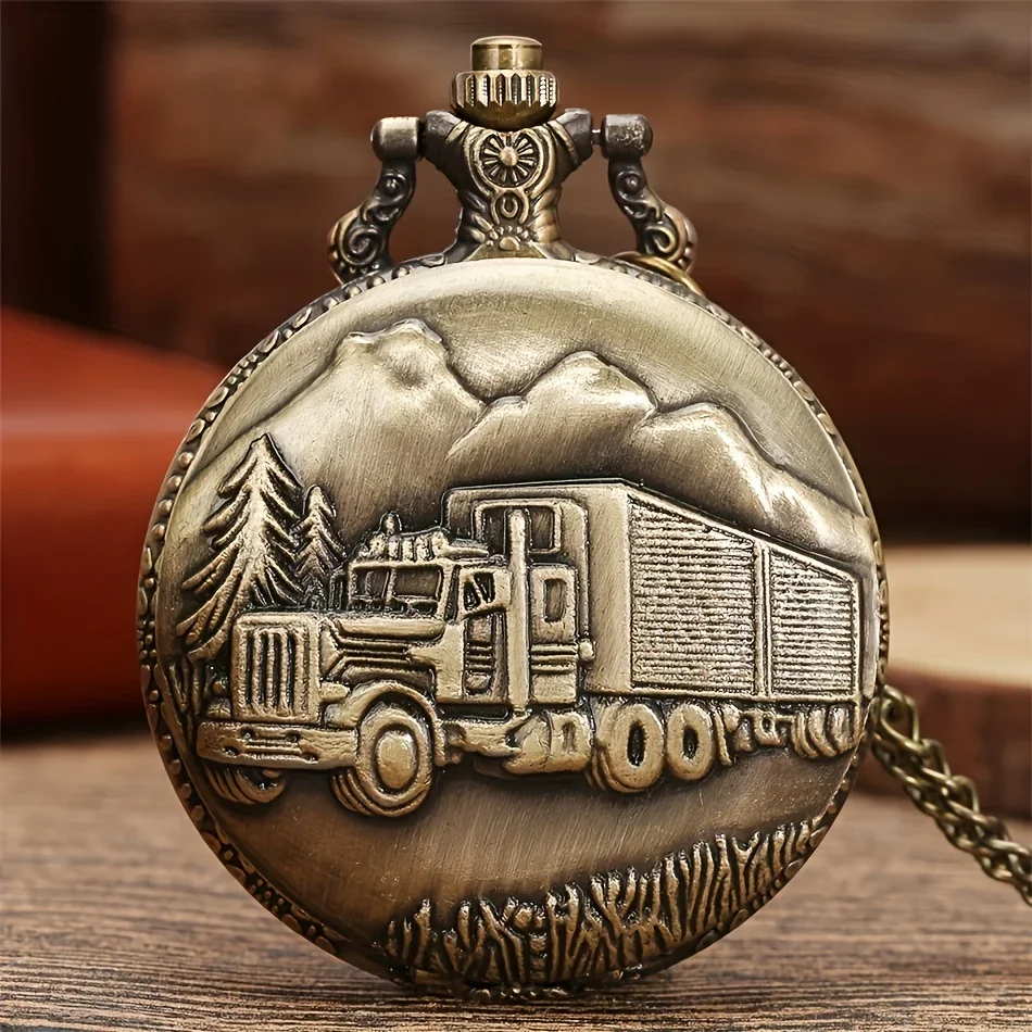 청동 대형 트럭 목걸이 석영 회중시계 - 빈티지 향수 디자인, 십대들을 위한 완벽한 휴일 선물