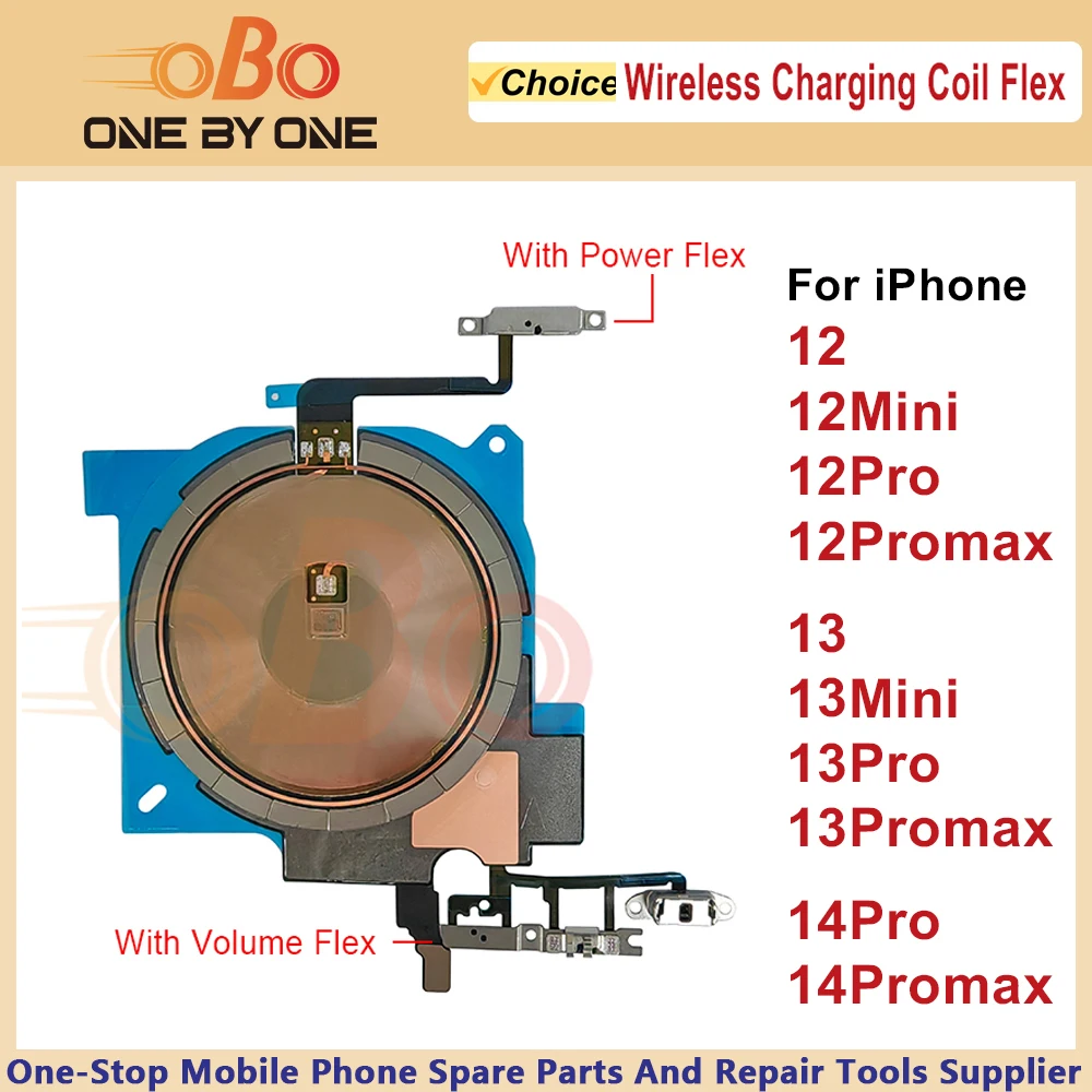 iPhone 12 13 Mini 14 Pro Max 무선 충전기 패널 수리(1PC)용 전원 볼륨 플렉스 케이블이 있는 무선 충전 코일 스티커