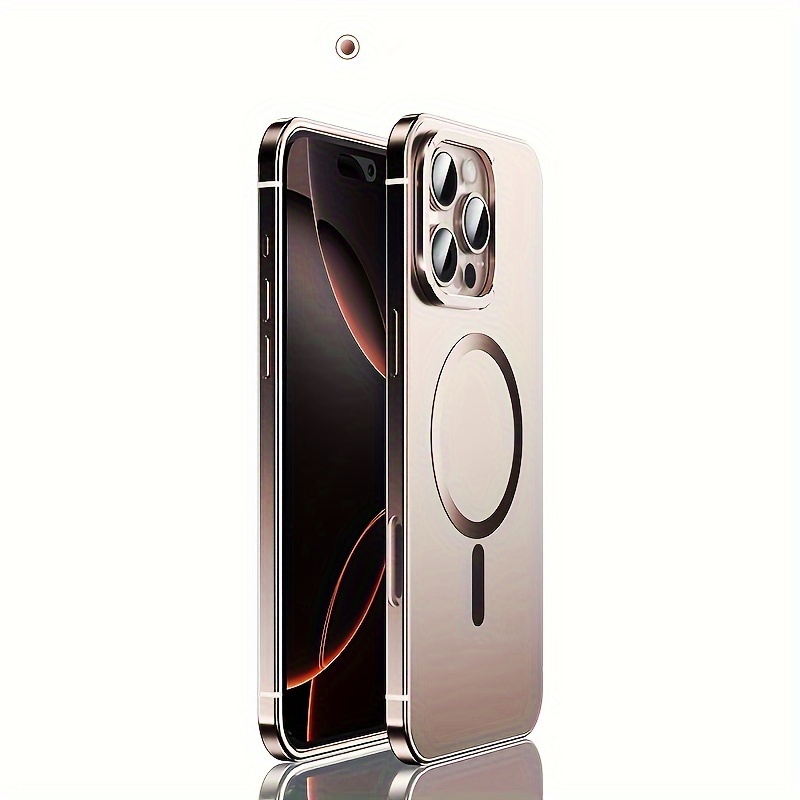 TEMU 아이폰 16 프로 맥스용 스테인리스 스틸 매트 프레임 마그네틱 초슬림 케이스 - 무선 충전 지원, 원래 색상 매칭 보호 커버