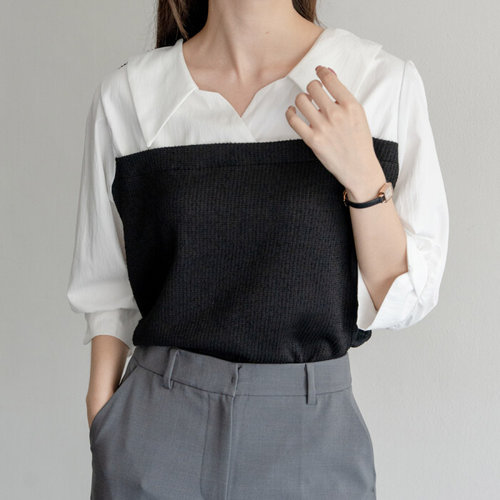[아이우먼]흐름라인배색블라우스 LYV100M508 빅사이즈