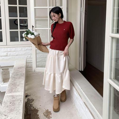 [옷자락]여성 무지컬러 아크릴 캡소매 니트