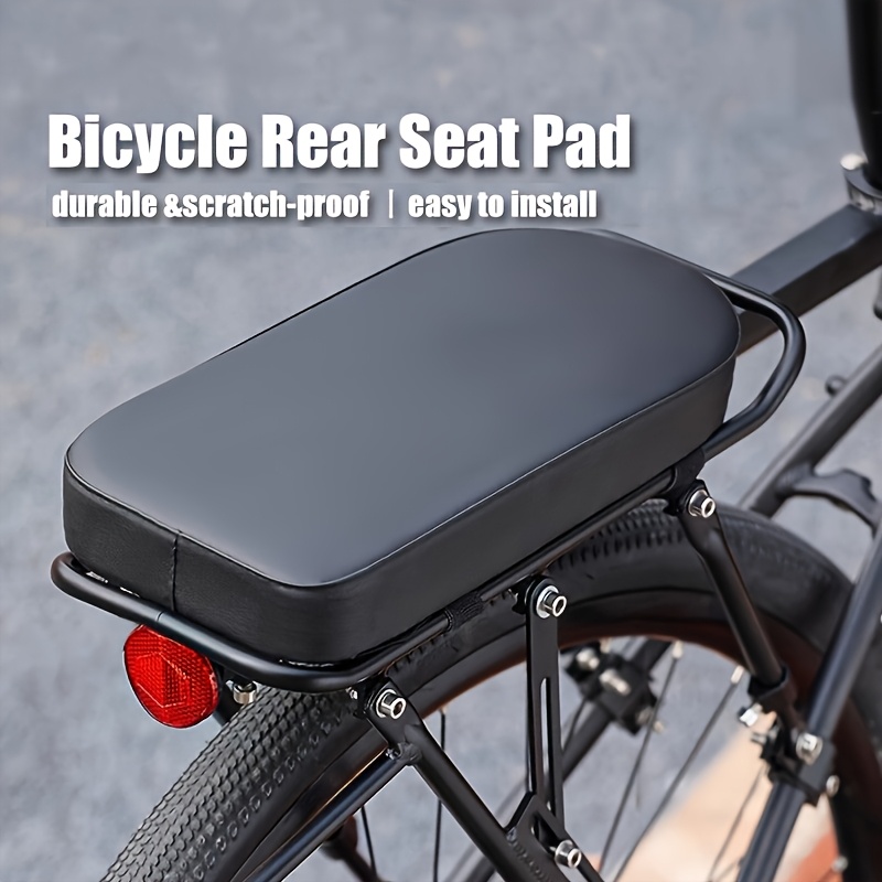 TEMU 1pc 블랙 자전거 후면 시트 패드 - 내구성 및 긁힘 방지, 쉬운 설치, 편안함을 위한 인간공학적 디자인, 산악 자전거 및 도로 자전거에 완벽한 자전거 시트 편안함, 야외 사이클링 기어, 세련된 텍스처 마감, 튼튼한 구조