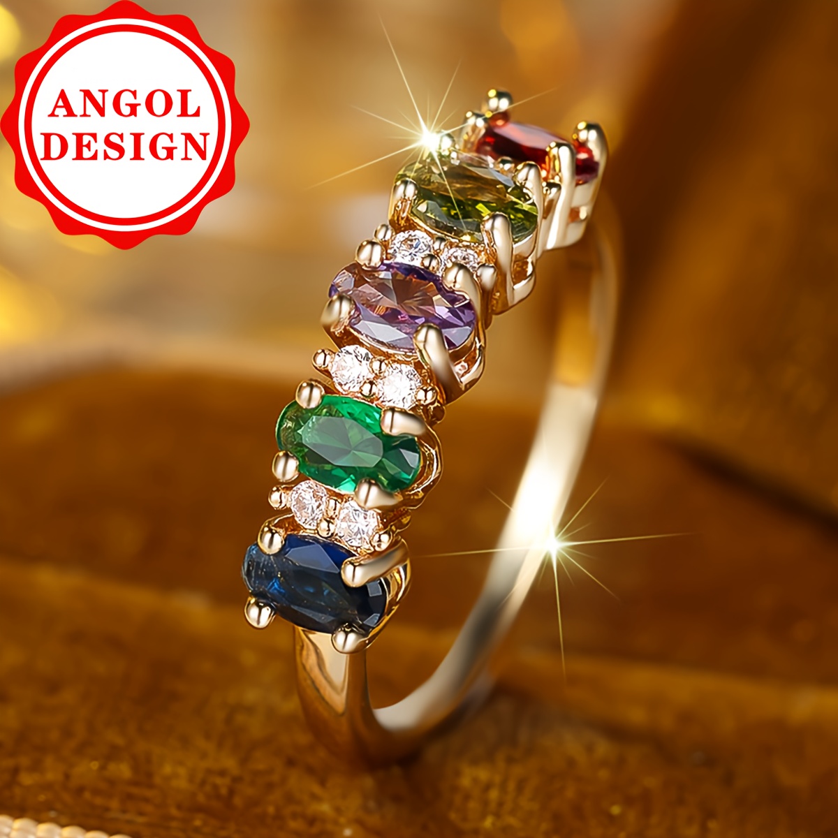 TEMU 원피스 멀티 컬러 합성 지르코니아 반지 | 14K 금도금 구리, 데일리, 파티, 결혼식에 적합, ANGOL의 빈티지 및 스타일
