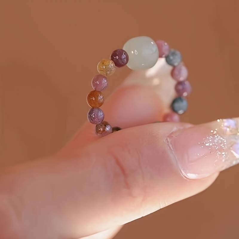 TEMU 빈티지 심플 스타일 유리 비즈 반지 - 여성용 - 도금 없음, 데일리 웨어 패션 액세서리, 모든 계절에 적합