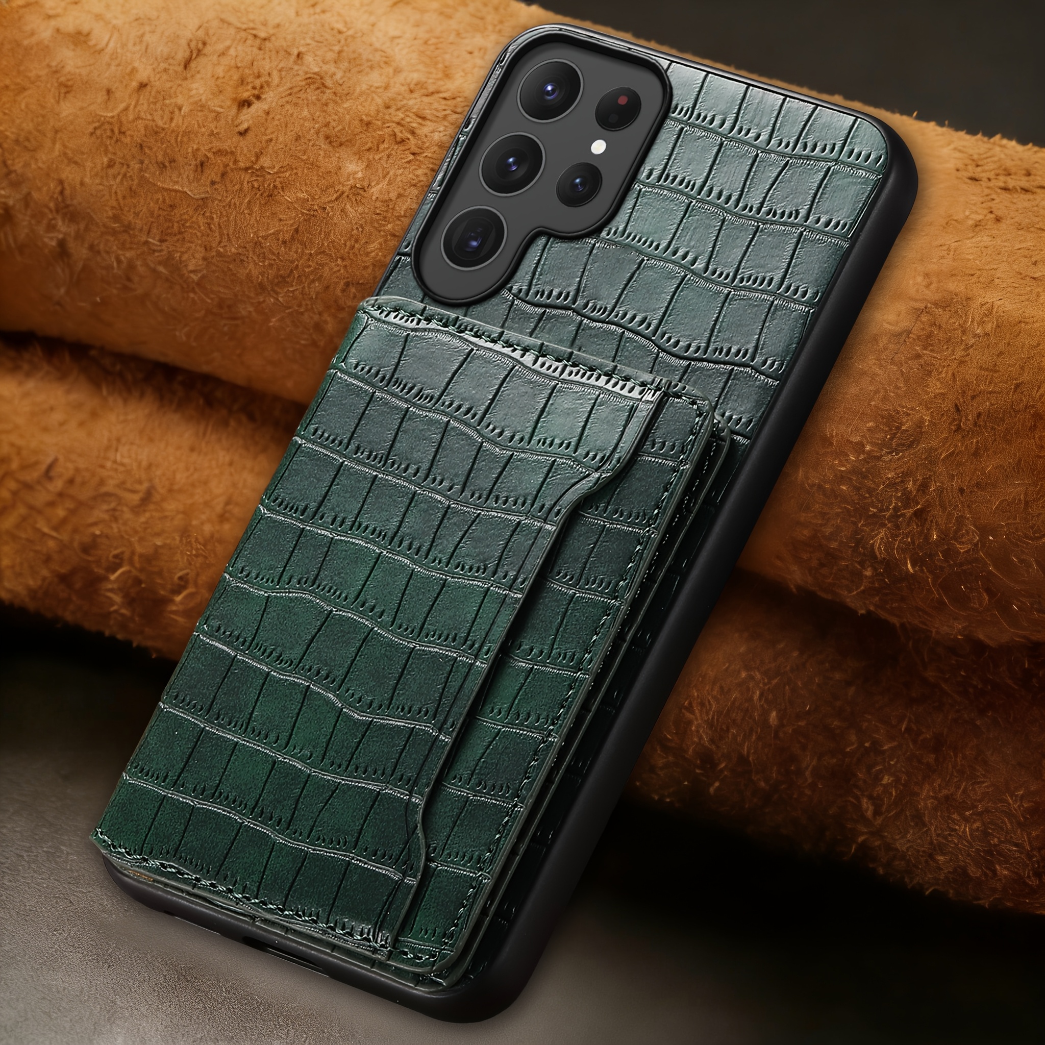 TEMU 휴대폰 케이스 - Denior | 악어 패턴 인조 가죽 카드 가방 브래킷 폰 케이스 (삼성 갤럭시 S25/S24/S23 시리즈 & 카드 가방 (카드 슬롯 3개))