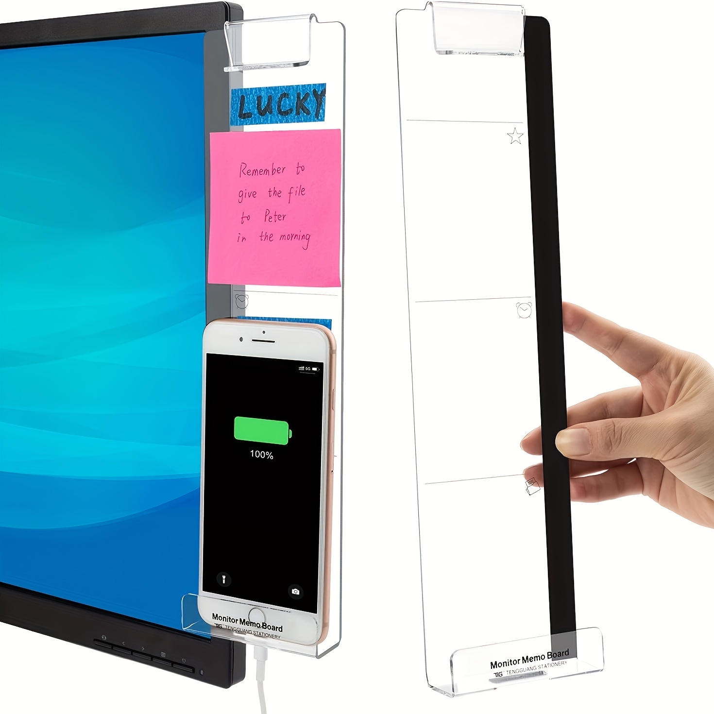 TEMU 투명 아크릴 듀얼 사이드 모니터 데스크 오거나이저 & 휴대폰 홀더 - 홈오피스, 컴퓨터 세팅용 메시지 보드, 제품성공률 향상, 리모트 워커를 위한 튼튼한 디자인의 사무실 액세서리