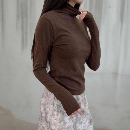 여성 가을 겨울 벨벳 기모 하이틀넥 스킨 겨울 목폴라 여성 긴팔 이너티 니트