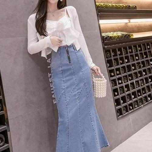 [XBG41922]G125953 앞지퍼데님롱스커트 여성스커트