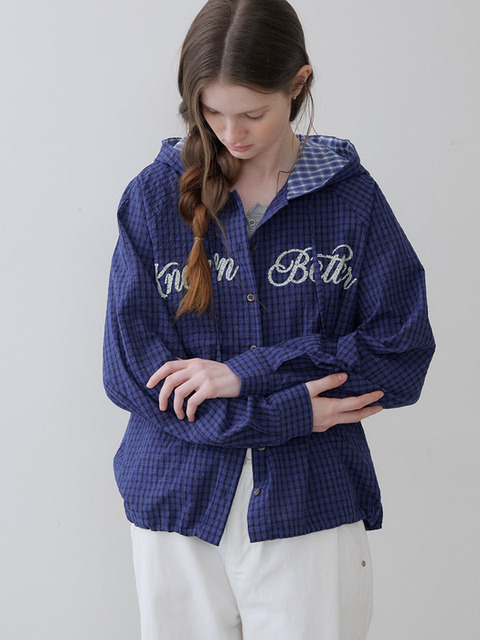 [노운베러] Checked hoodie shirt [KNSS06SH10]_Blue