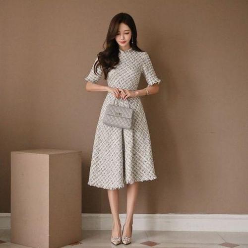 [에이치플러스몰]롱원피스 인기 엘레나 반팔 트위드 감성