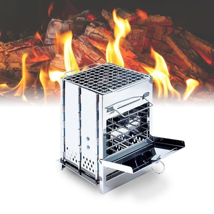 새로운 스테인레스 스틸 목재 스토브 접이식 고온 저항은 야외 캠핑 피크닉 오븐 난방 변형시키기 쉽지 않