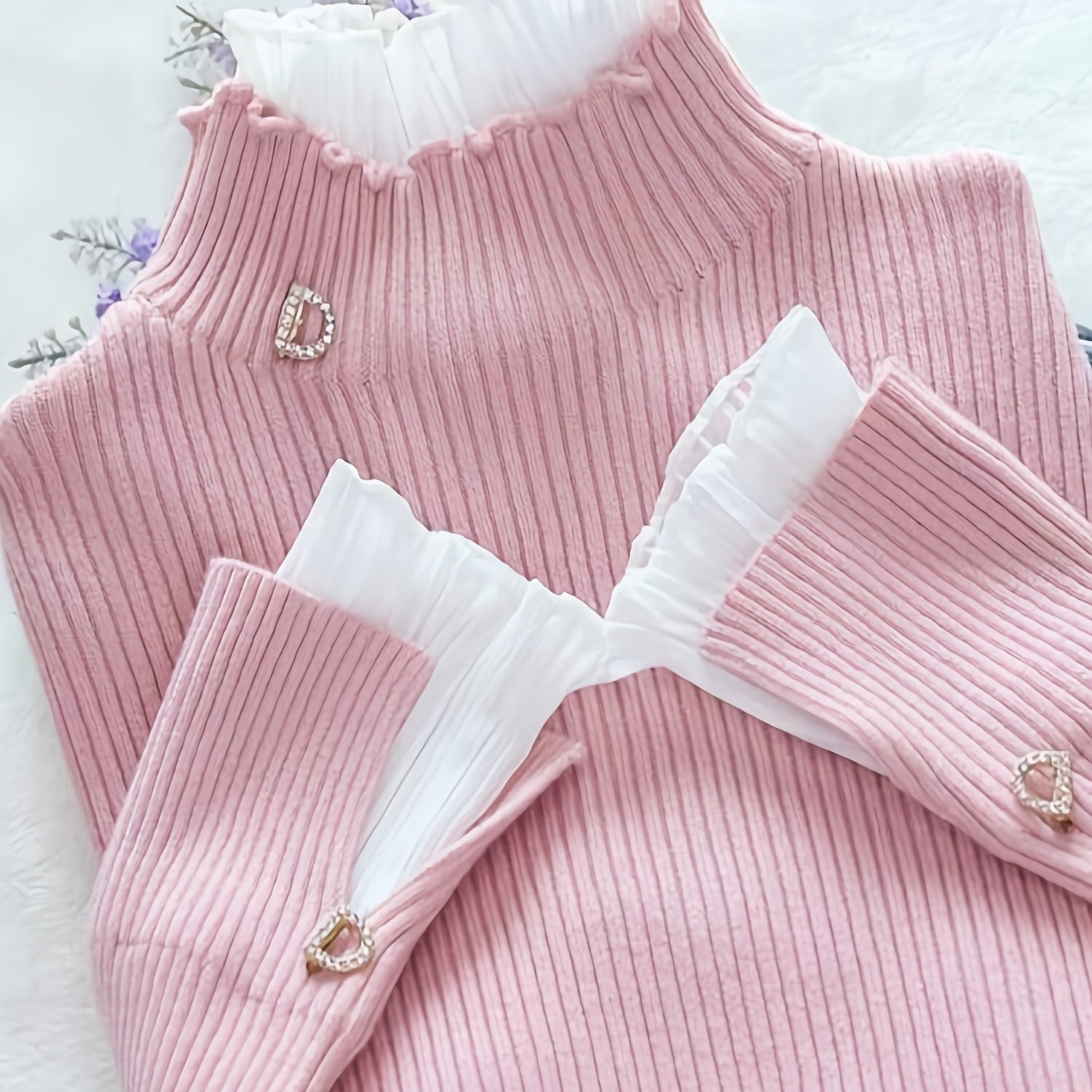 TEMU JWDX258 코어 스피닝 레이스 모크넥 여성 스웨터 탑, 가을/겨울용 루즈핏 안감