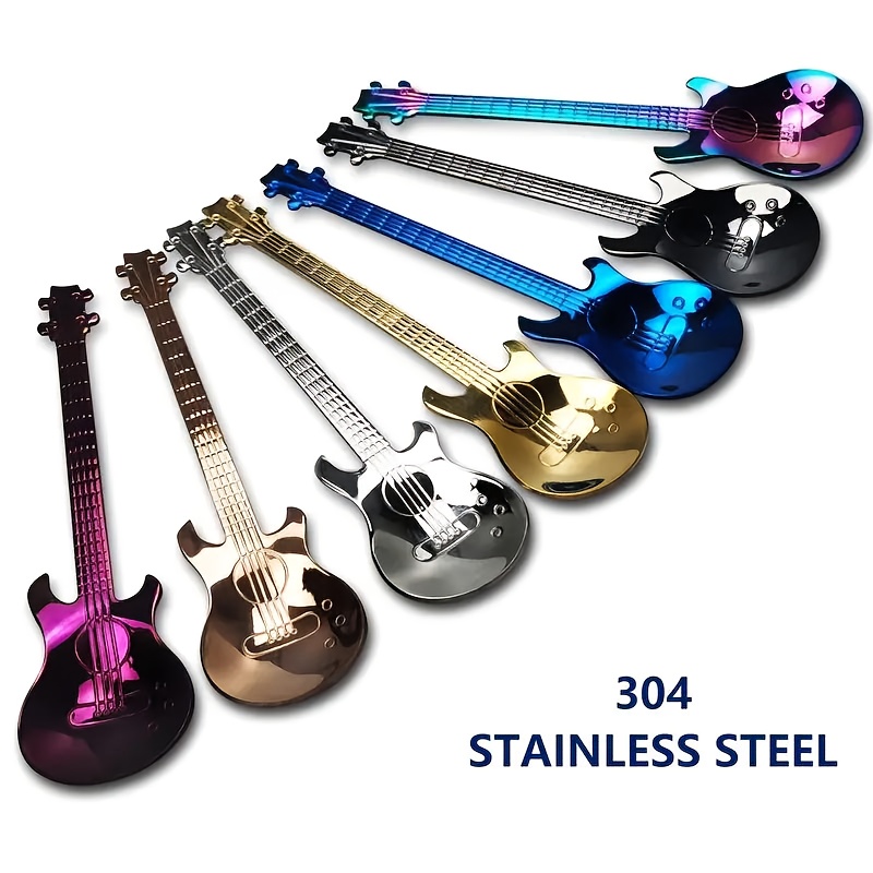 TEMU 7개 스테인리스 스틸 기타 모양 디저트 스푼 - 컬러풀하고 내구성이 뛰어나며 쉽게 청소할 수 있는 커피, 우유, , 사탕용 도구 - 레스토랑, 카페, 가정용으로 완벽한 커피 바 액세서리 | 재미있는 디자인 | 내구성 있는 도구, 커피 바 액세서리, 기타 모양 스푼, 커피용 스푼, 식사용 스푼, 디저트 스푼, 주방용품, 차 스푼, 작은 스푼, 스푼