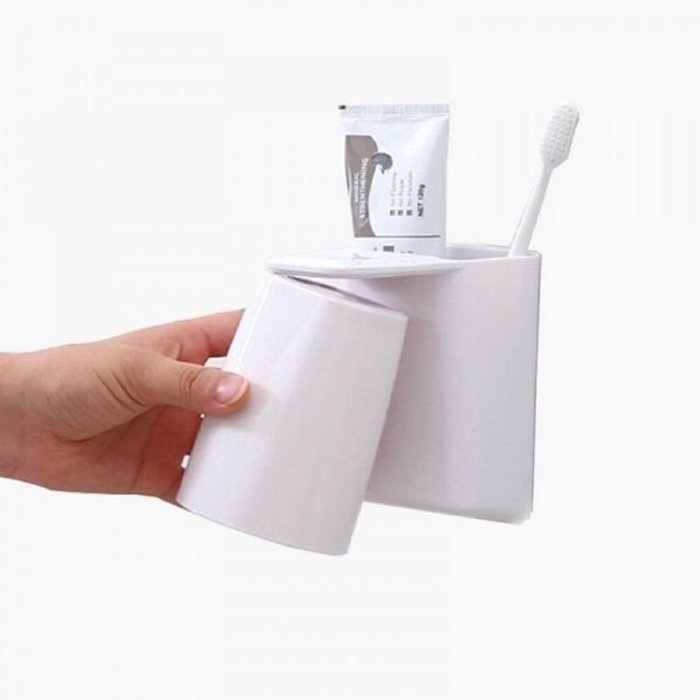 부착식 양치컵+칫솔꽂이 4인용 욕실칫솔걸이 부착식칫솔꽂이 칫솔꽂이세트