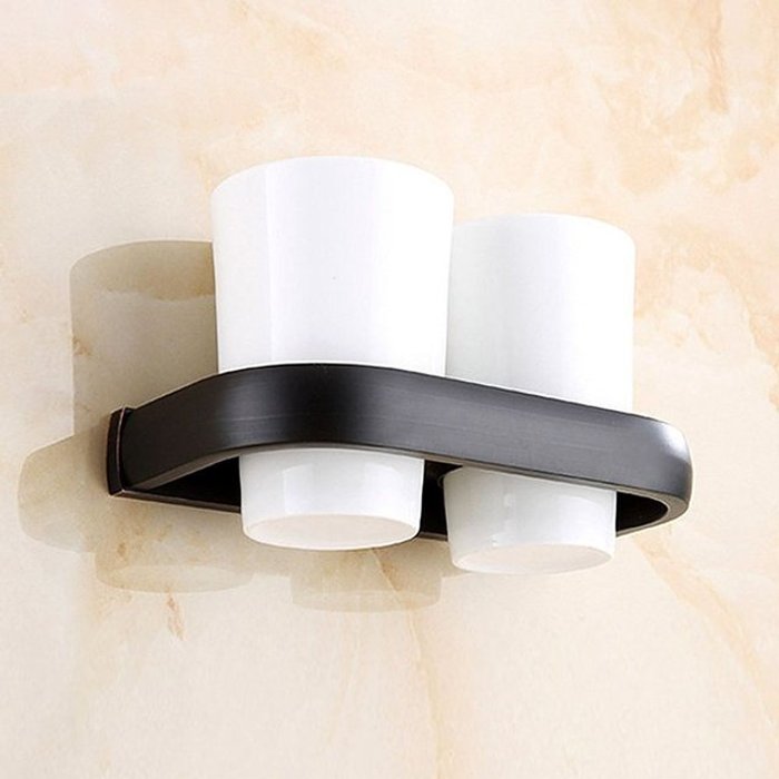엄지척 올인바스 도자기 홀더 2인 욕실 양치컵 걸이 세트 컵