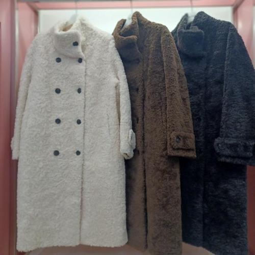Latium HC06 H라인 품편한 뽀글이 컬링램 하이넥 양털 롱코트 T2554ct02