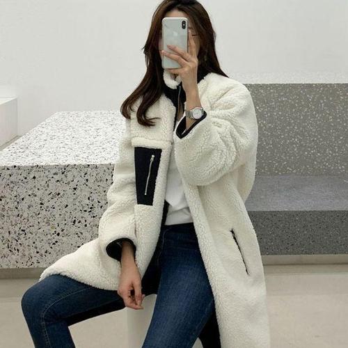 [에이치플러스몰]여자 양털 페미닌 트렌드 롱코트 1P 데일리 아우터 자