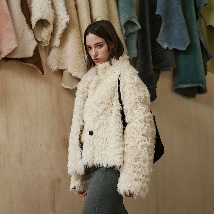 [앞머리]뽀글이 양털 배색 라운드넥 무스탕 하프코트n015