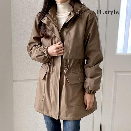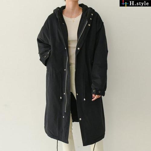양털 안감 덤블 오버핏 후드 롱 야상