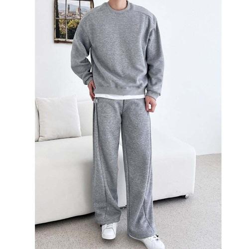 [셀럽하우스]남자 UBAE0297 맨투맨 와이드 팬츠 양털 기모 트레이닝 세트