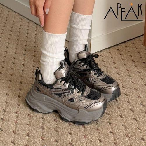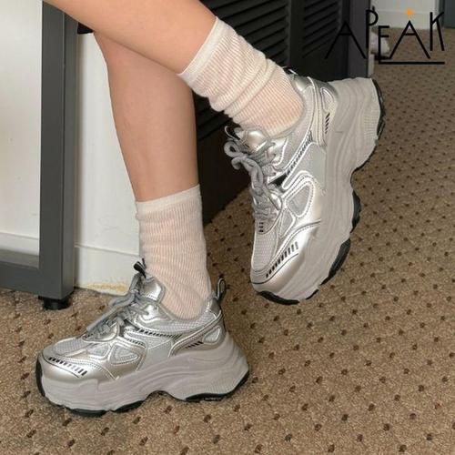 [스포츠용품(기타브랜드)]메탈릭 청키 어글리슈즈 여성 스니커즈 6CM 키높이운동화 실버