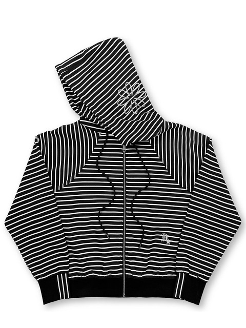 [다미쉬] 미드나이트 플라워 스트라이프 후드집업_블랙