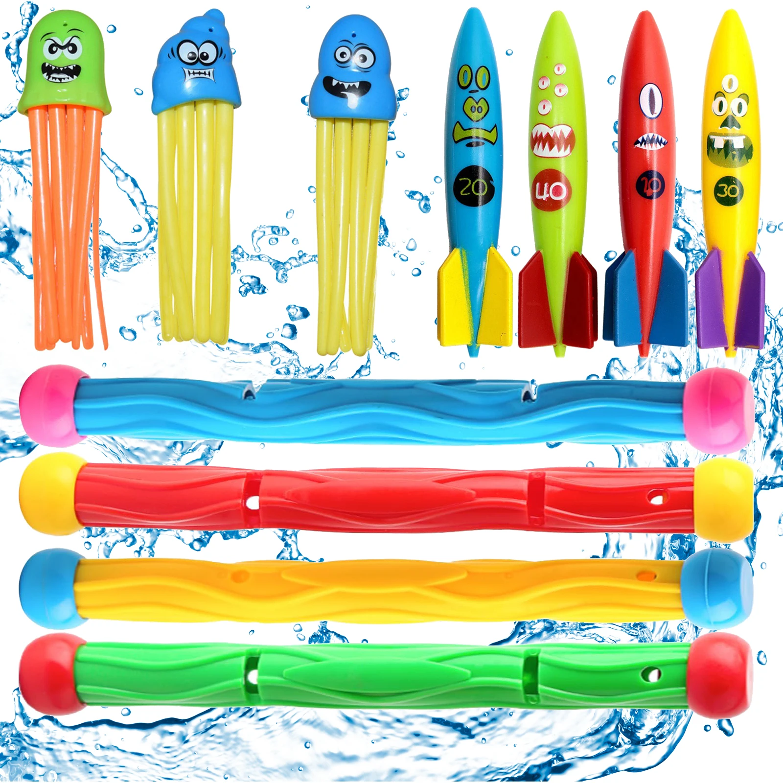 아이들을위한 11Pcs 다이빙 풀 장난감 여름 수영 재미 물 싱킹 장난감 호흡 폐쇄 훈련 던지기 물 수중 장난감 게임