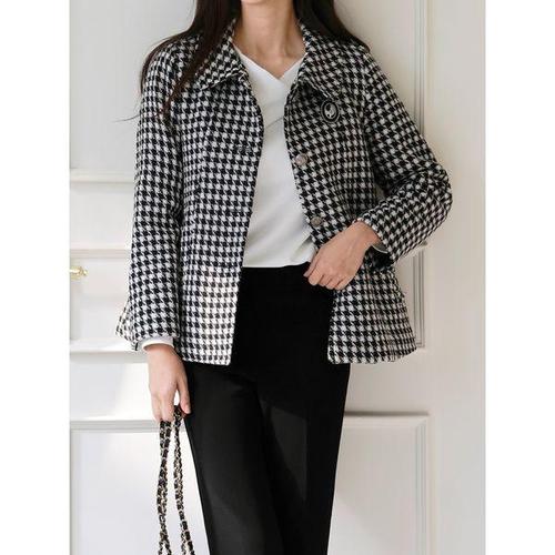 [드리다]여성 겨울 하운드 체크 빅사이즈 누빔 울 자켓 40-50대 미시 중년여성 엄마옷 하객 모임 상견례