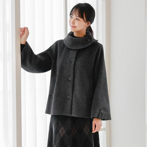 [드리다]드리다 여성 겨울 볼륨카라 빅사이즈 플레어 울 하프 코트 미시 중년여성 엄마옷 하객 모임 출근
